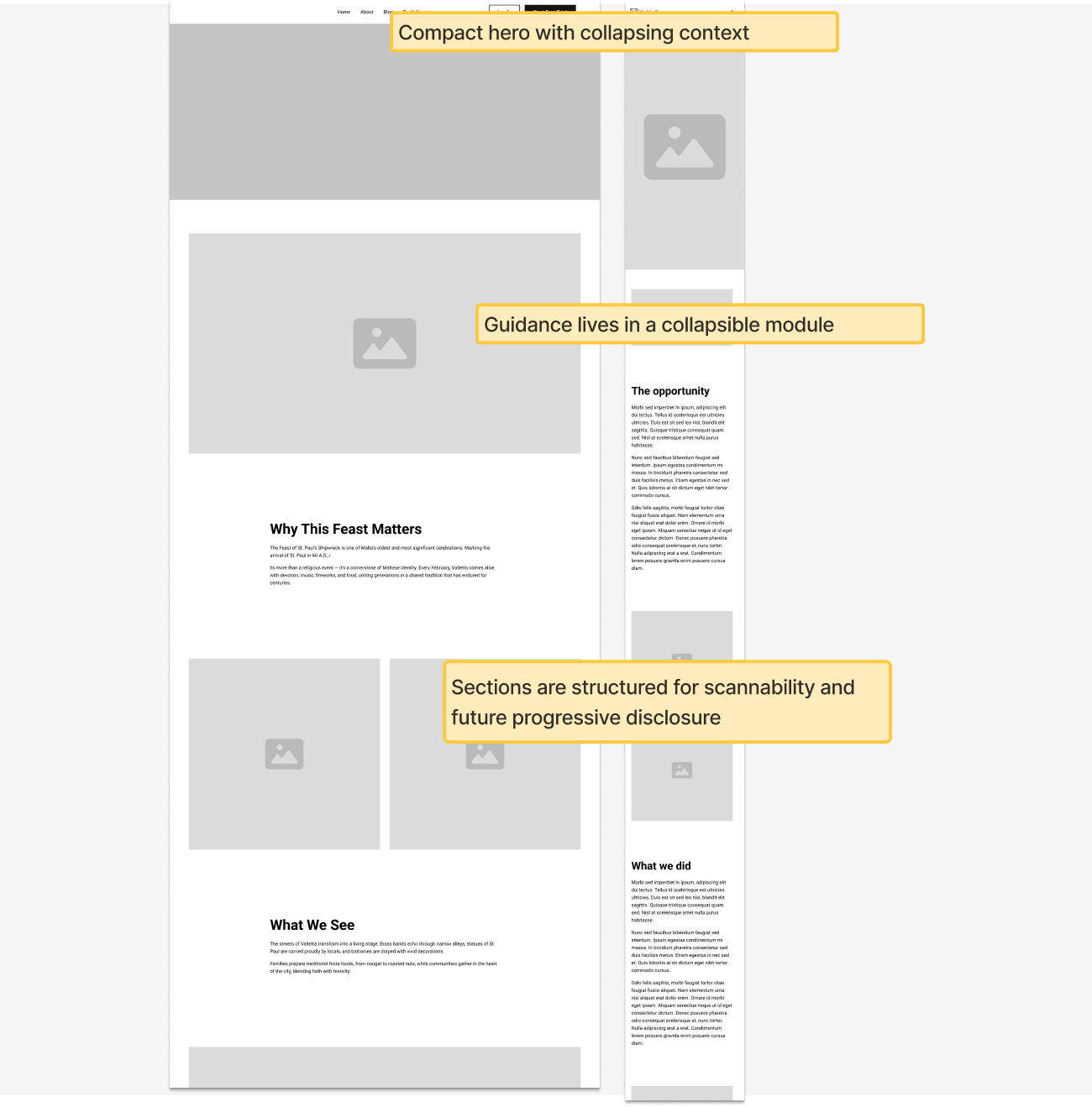 Based on the findings, I designed a content taxonomy that organizes narratives into cultural categories such as architecture, tradition, everyday life, and nature. I then translated this structure into wireframes and a high-fidelity interactive prototype, ensuring consistent navigation and storytelling flow.